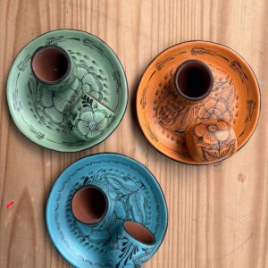 Set de mezcaleros (base, dos tequileros y plato para sal).