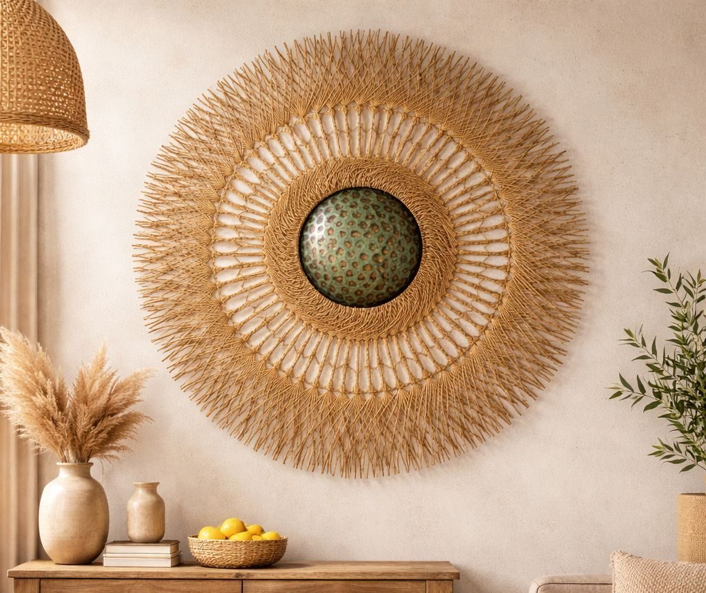 Ensamble con el trabajo de dos artesanos reconocidos internacionalmente por la belleza y detalle de sus piezas. Ya sea sola o enmarcada, esta estrella dará a tus muros calidez y elegancia.