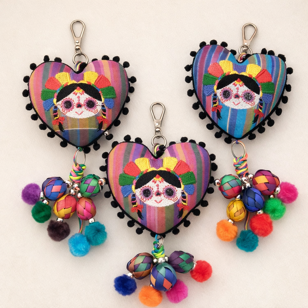 Un accesorio hermoso y muy mexicano para tu bolsa de mano o, por su tamaño, ideal para poner las llaves y encontrarlas fácilmente, así como el detalle/regalo perfecto que contiene los colores y alegría mexicana.