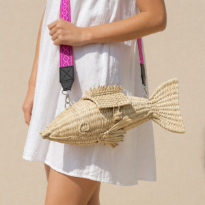 Fibras naturales (chuspata)/ Correa de acrilán y herrajes de metal.